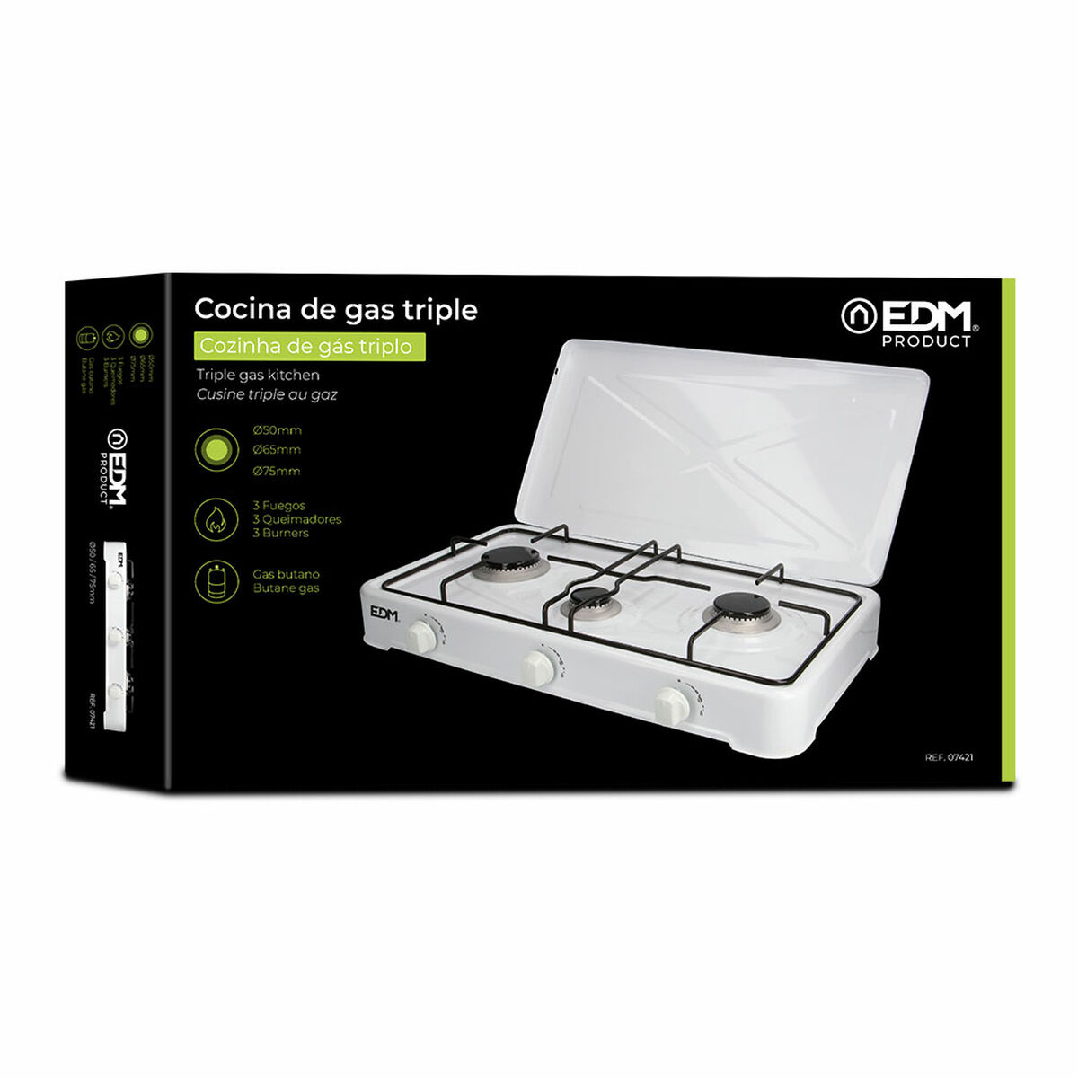 Wenn Sie Haushaltsgeräte zum besten Großhandelspreis suchen, dann verpassen Sie nicht Ihre Chance auf Gaskocher EDM 07421 60 x 33 x 12 cm sowie ein breites Sortiment an kleinen Haushaltsgeräten! Art: Gaskocher Gasherdplatte Farbe: Weiß Material: Metall Kochbereiche: 3 Maße ca.: 60 x 33 x 12 cm Kraftstofftyp: Gas